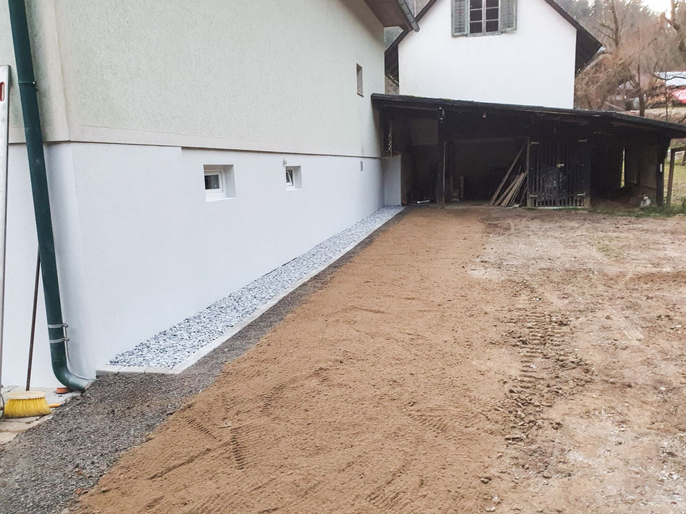 Nach einem Hochwasserereignis befand sich der Bauherr in einer Notlage, da sowohl die Außenfassade als auch Teile der Außenanlagen durch Vermurungen und Wasserschäden stark beeinträchtigt waren. Um rasch Abhilfe zu schaffen, wurde das Projekt kurzfristig, unbürokratisch und lösungsorientiert umgesetzt.